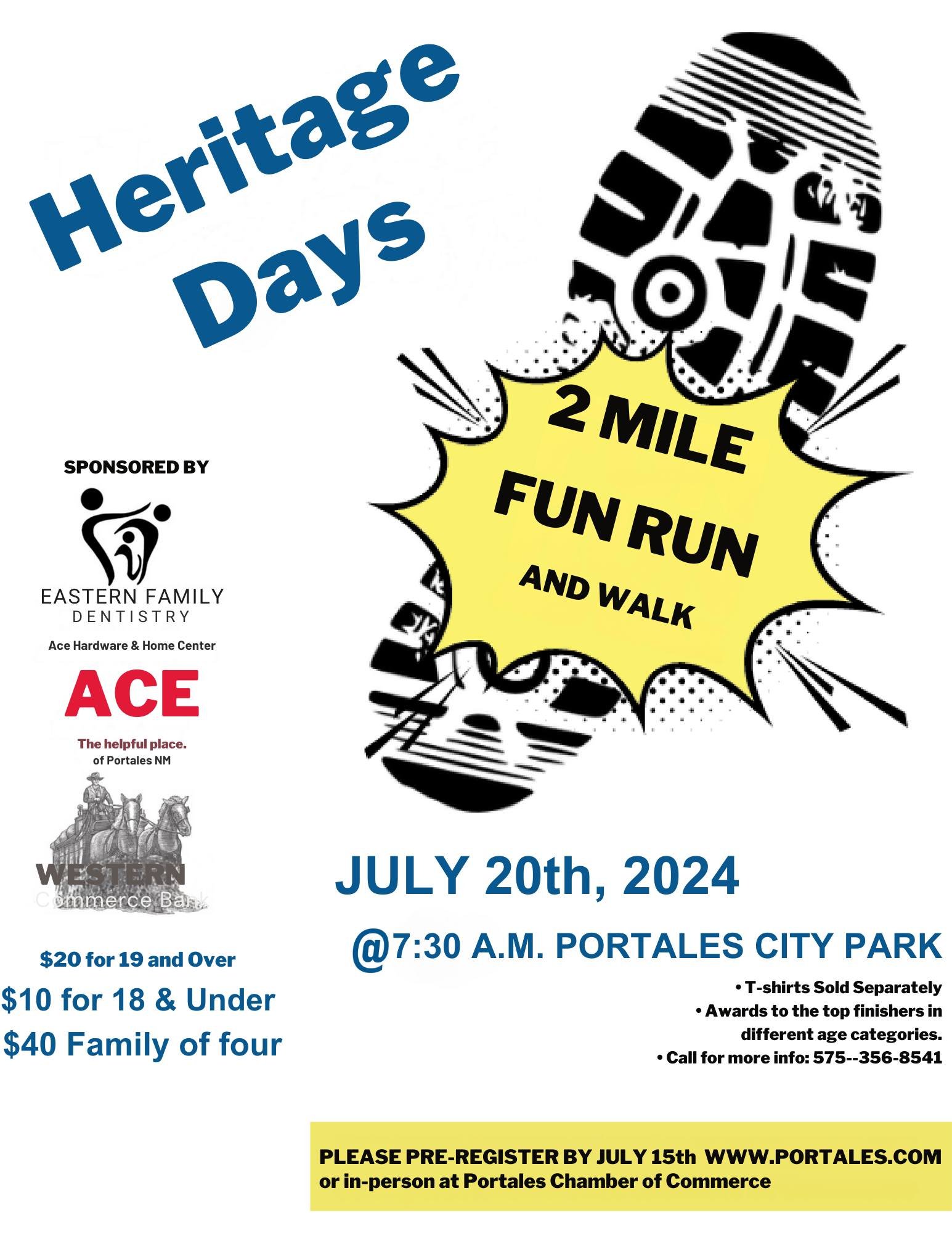 In conjunction with Heritage Days, Portales Womans Club will host a two-mile fun run/walk on July 20. Net proceeds benefit the Portales Woman’s Club’s (PWC) scholarships and local and international service projects.